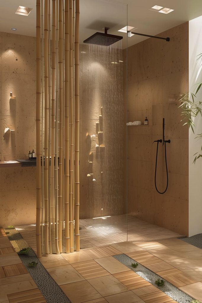 Bring an element of nature into your shower with bamboo tiles. These eco-friendly tiles offer a sustainable alternative to traditional materials and lend a touch of exoticism to your bathroom.