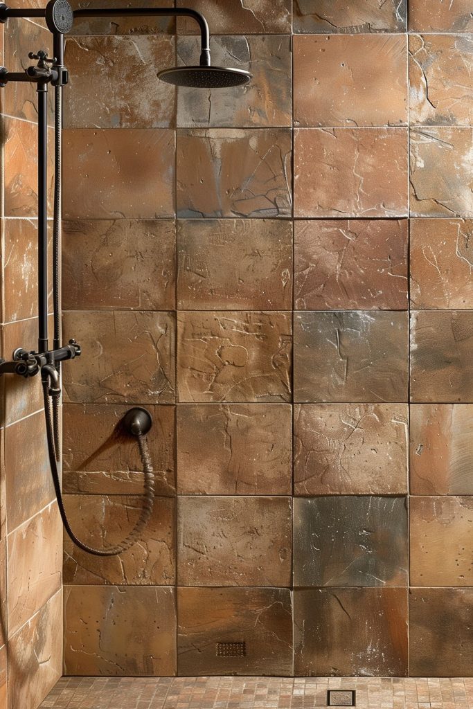 Add warmth and texture to your shower with terracotta tiles. Their earthy hues and rustic texture evoke the charm of Mediterranean villas and Tuscan retreats.