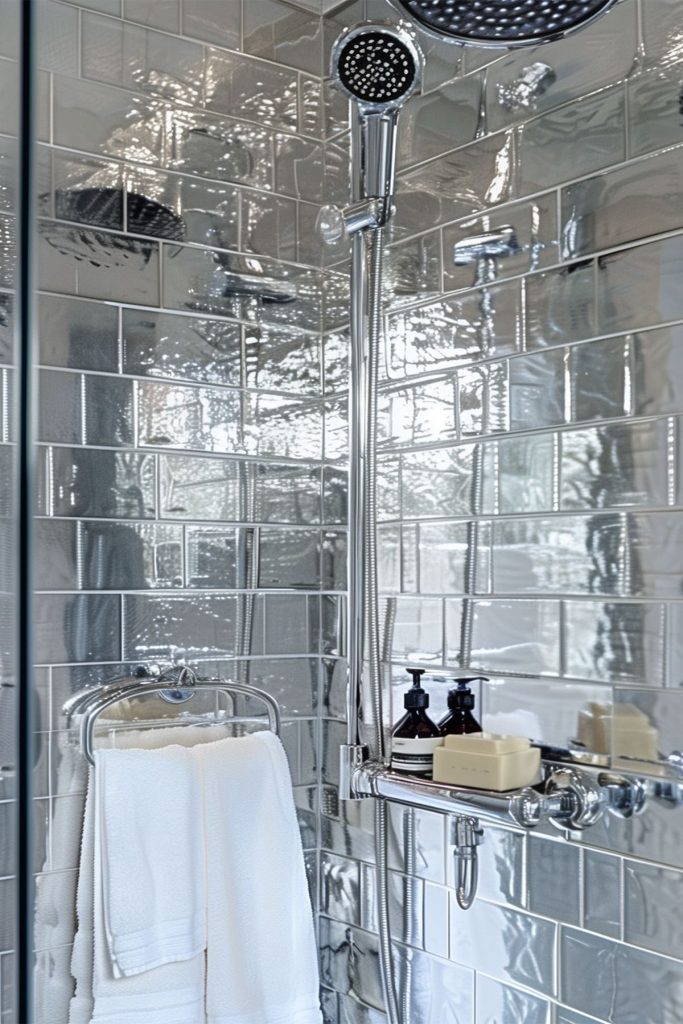 Opt for mirrored tiles to visually expand your shower space and bounce light around the room. These reflective surfaces add a touch of glamour and sophistication to your bathroom.