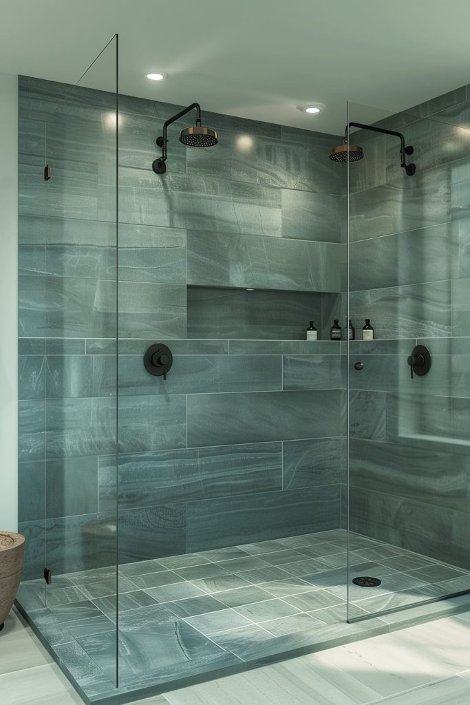 Consider eco-friendly tile options such as recycled glass or sustainable porcelain for an environmentally conscious shower design that doesn’t compromise on style.