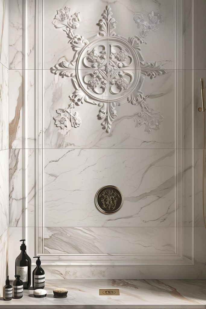 Channel the grandeur of ancient Rome with marble-inspired tiles featuring intricate veining and classical motifs. These timeless tiles exude opulence and sophistication in your shower.