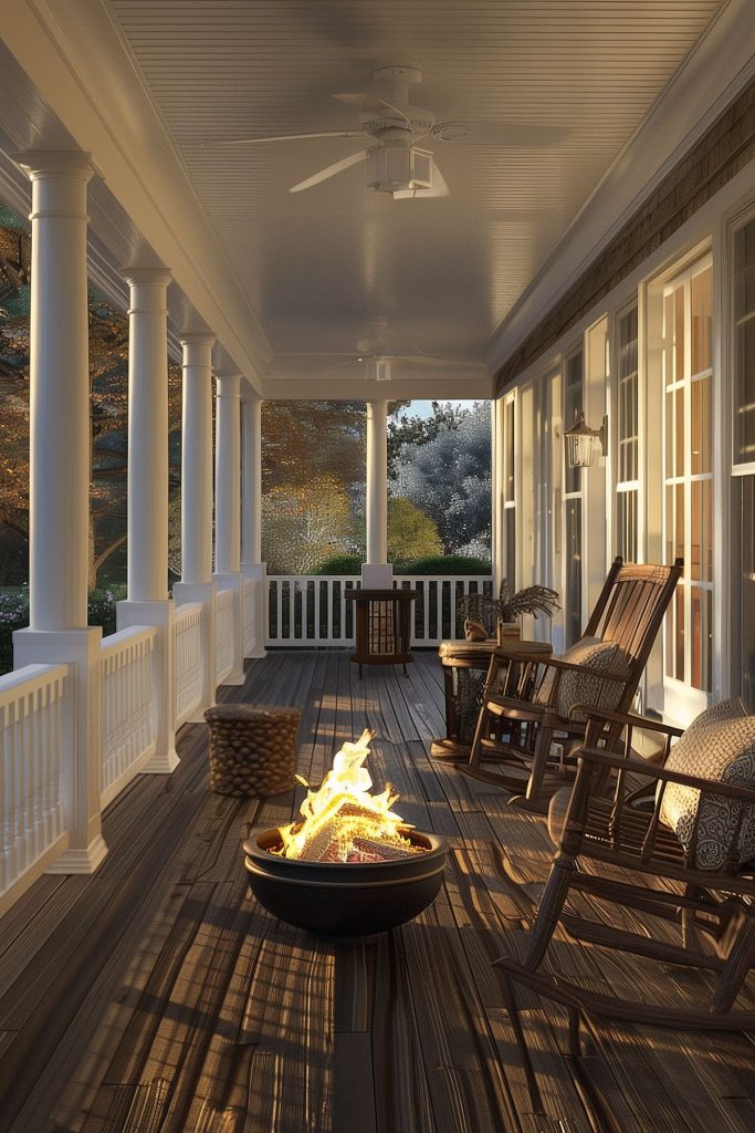 Transform your long front porch into a cozy gathering spot with a fire pit, offering warmth and ambiance on chilly evenings. Choose a compact design that fits your space and ensures safety.
