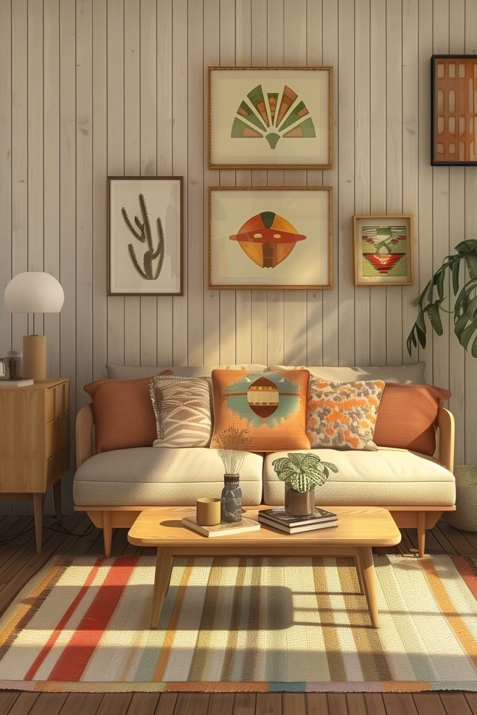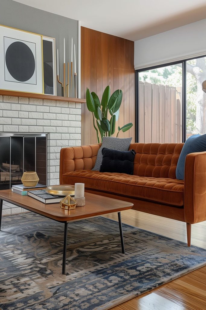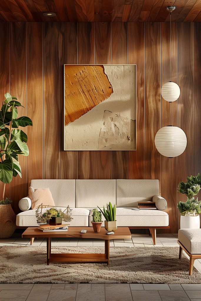 Bring the outdoors in with natural elements that enhance the warmth and authenticity of your midcentury modern living room.
