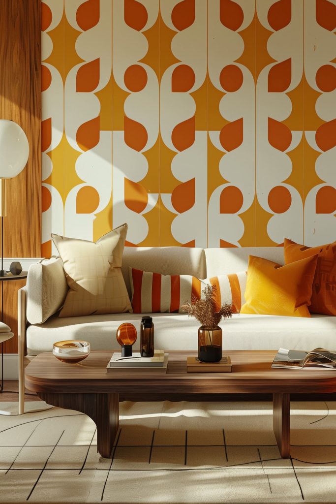Make a statement with retro-inspired wallpaper featuring bold patterns or abstract designs to add a touch of vintage flair to your midcentury modern space.