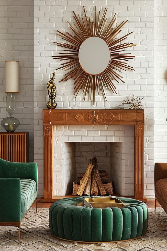 Elevate your midcentury modern living room with the iconic charm of sunburst mirrors, adding a touch of retro glamour and visual intrigue. Our curated selection celebrates this timeless design element, infusing your space with radiant energy and vintage allure.