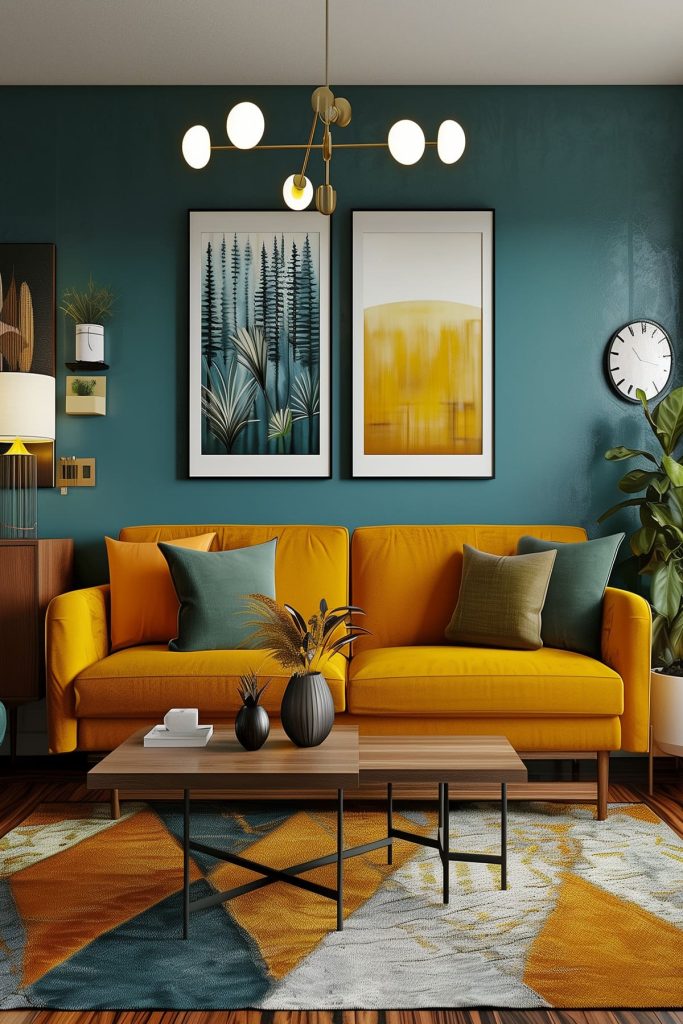 Transform your space with vibrant color schemes that pay homage to midcentury style and sophistication.