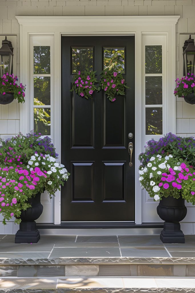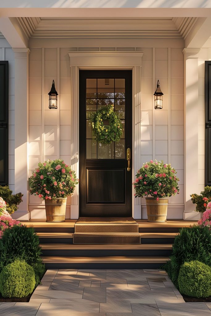 Create balance and elegance in your outdoor entryway with symmetrical planters, framing your door with lush greenery. Place matching planters on either side of your entrance for a harmonious and inviting aesthetic.
