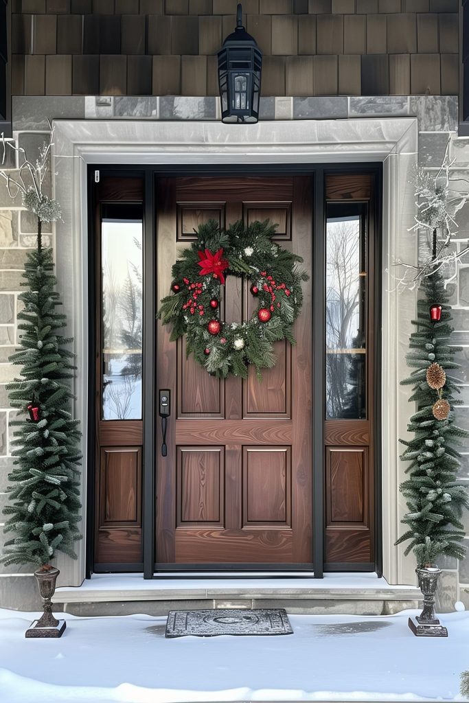 Welcome each season with a seasonal wreath adorning your outdoor entryway, adding a festive touch and inviting warmth. Hang a seasonal wreath to infuse your entrance with the colors and themes of the current time of year, creating a delightful first impression for guests.
