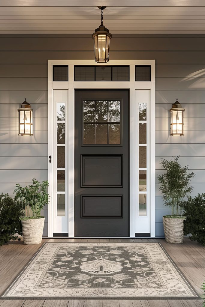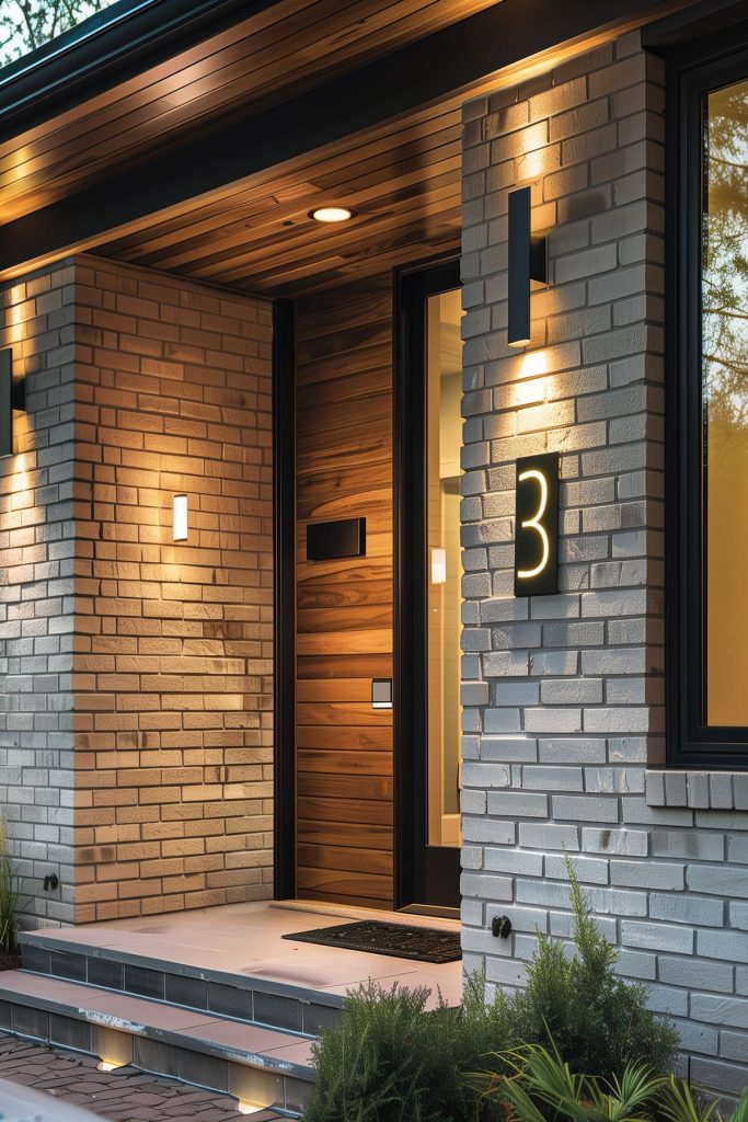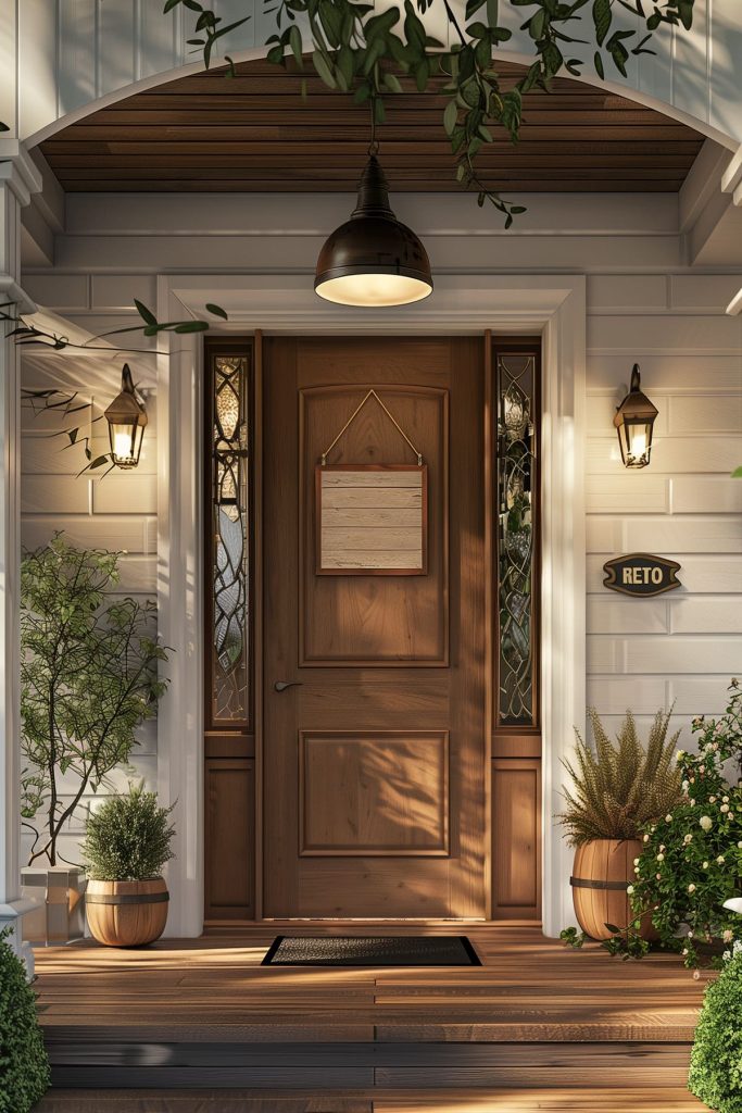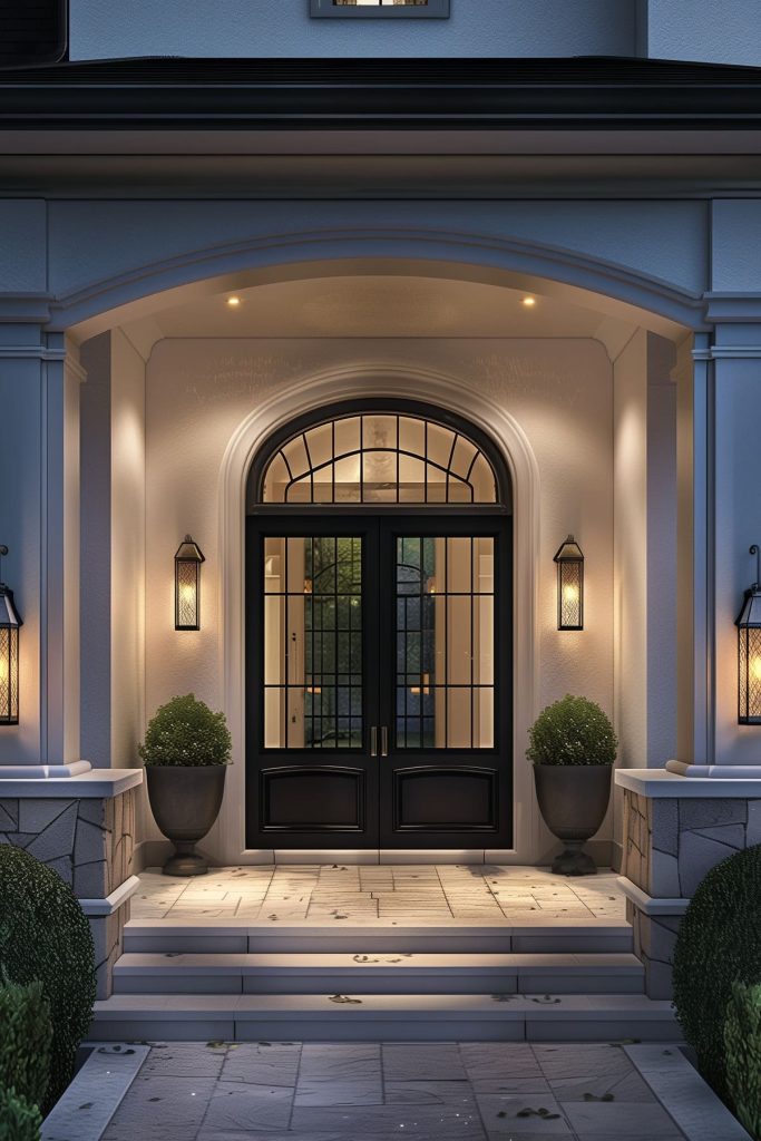 Illuminate your outdoor entryway with carefully placed lighting fixtures, enhancing safety and ambiance. Strategically position outdoor lights to highlight architectural features and guide visitors to your door.