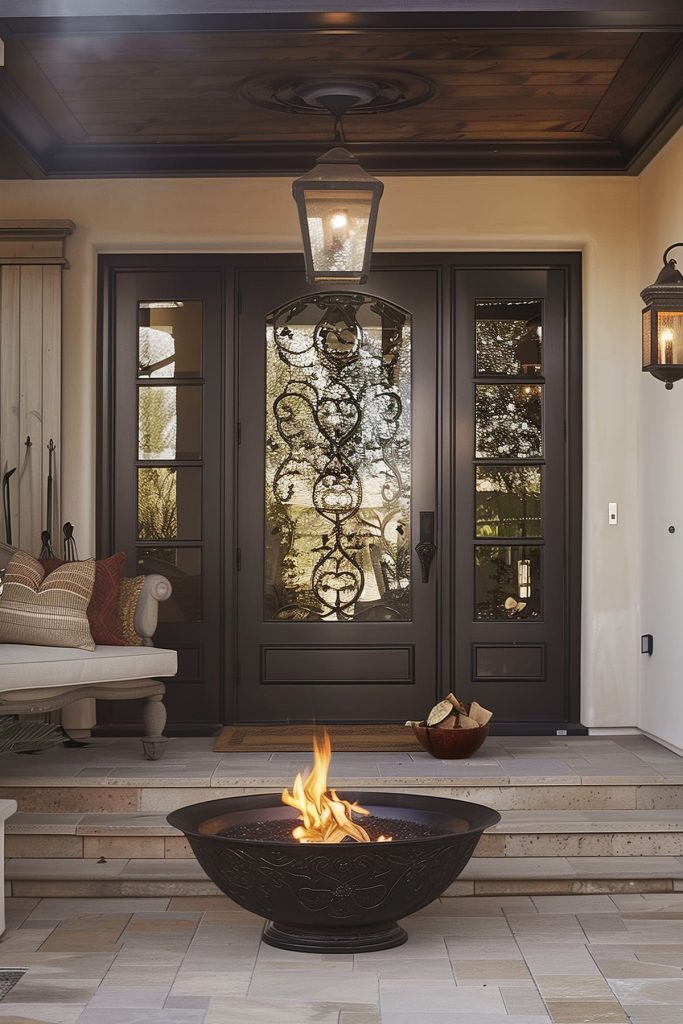 Transform your outdoor entryway into a cozy gathering spot with a stylish fire pit, offering warmth and ambiance. Nestle the fire pit amidst comfortable seating, creating an inviting space for guests to gather and unwind.