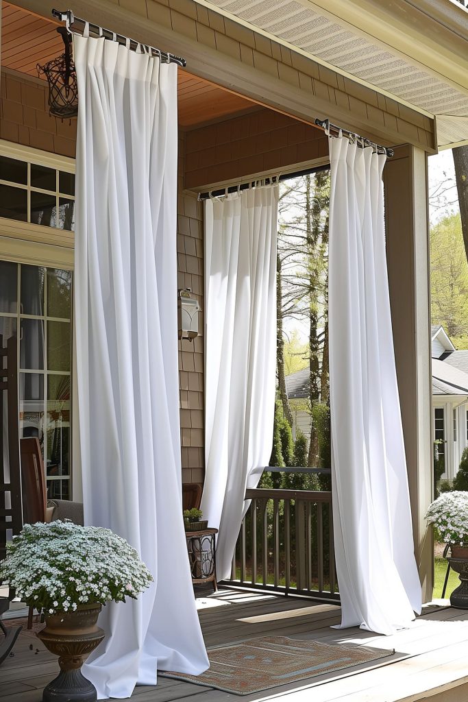 Transform your outdoor entryway into a cozy and private retreat with stylish outdoor curtains, adding both functionality and elegance. Hang weather-resistant curtains to provide shade and privacy, while also enhancing the aesthetic appeal of your outdoor space.