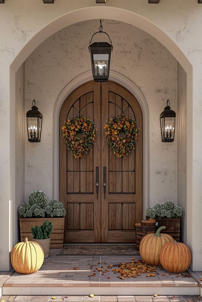 Adorn your outdoor entryway with hanging lanterns, infusing the space with a touch of charm and warmth. Hang lanterns along the pathway or near the door, casting a soft and inviting glow that beckons guests inside.