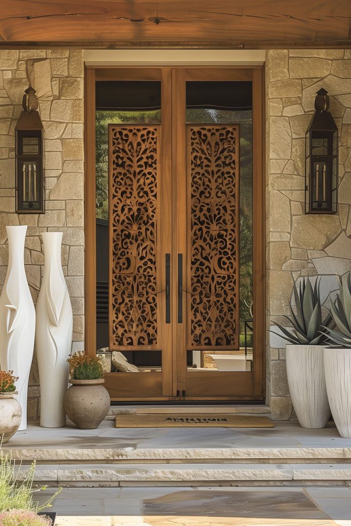 Embellish your outdoor entryway with captivating outdoor artwork, infusing your space with personality and charm.