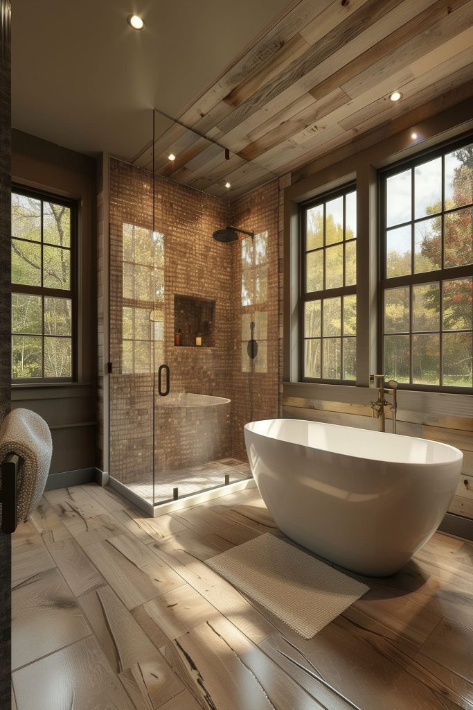 Indulge in luxury and relaxation with spa-inspired bathrooms in your barndominium, featuring sleek fixtures, spacious walk-in showers, deep soaking tubs, heated floors, and elegant finishes.