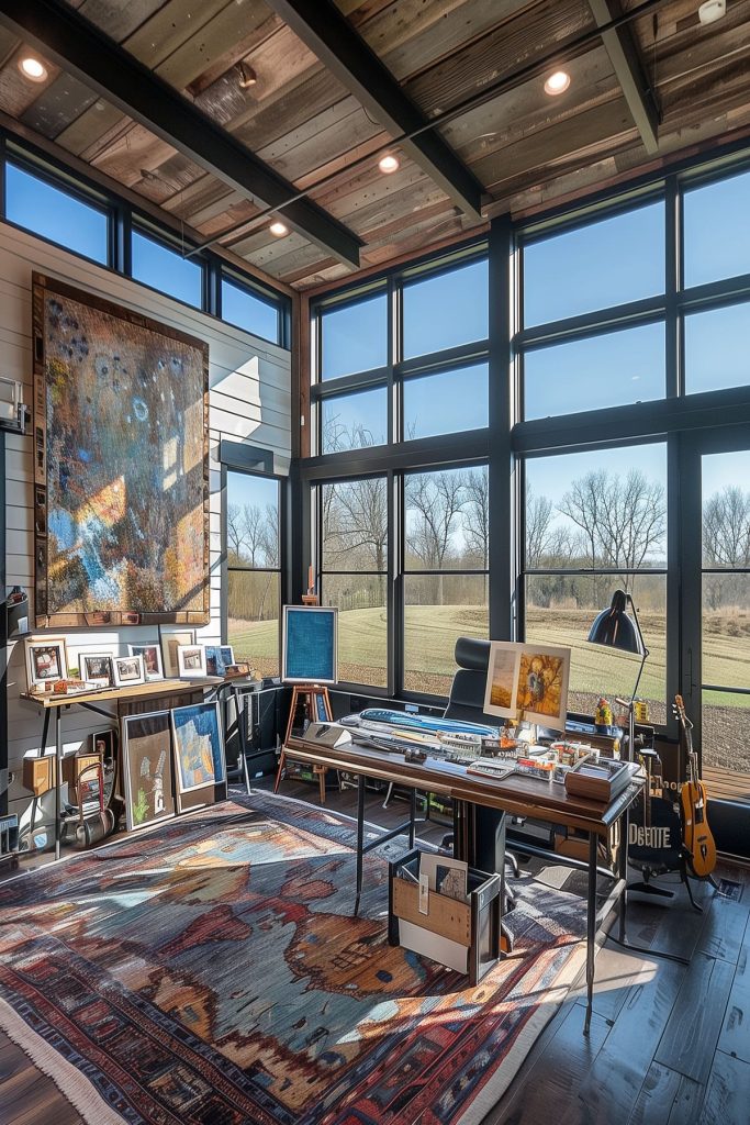 Create a dedicated workspace or artist’s studio within your barndominium, complete with ample natural light and inspiring views of the surrounding landscape.