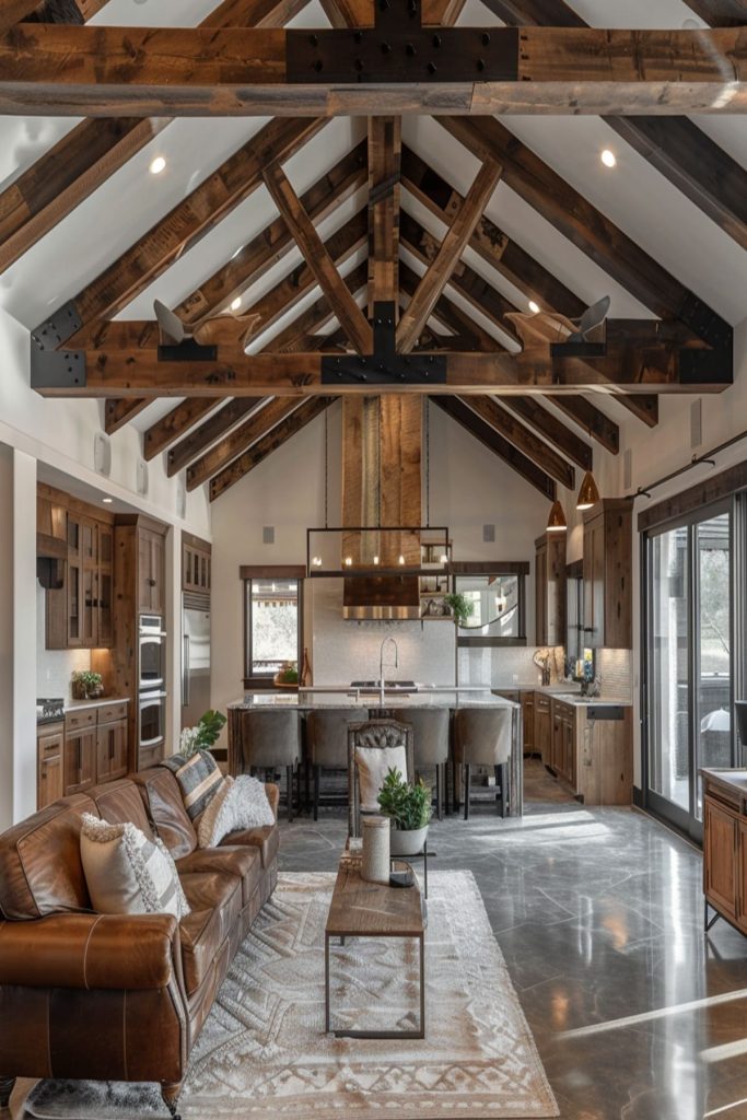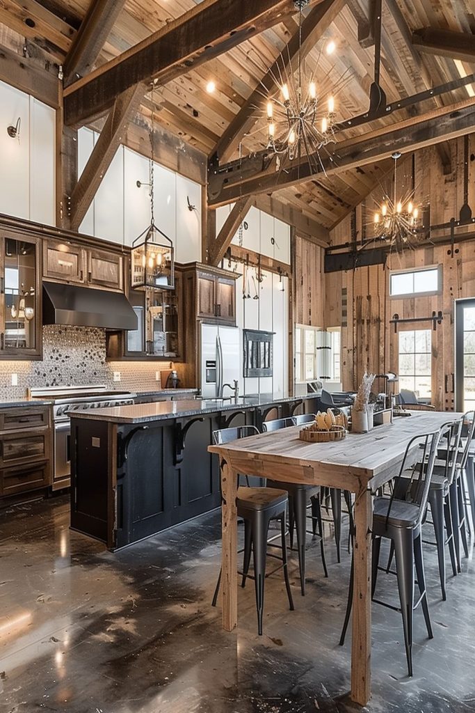 Give your barndominium an urban edge with industrial-inspired design elements like exposed ductwork, concrete floors, and metal accents.