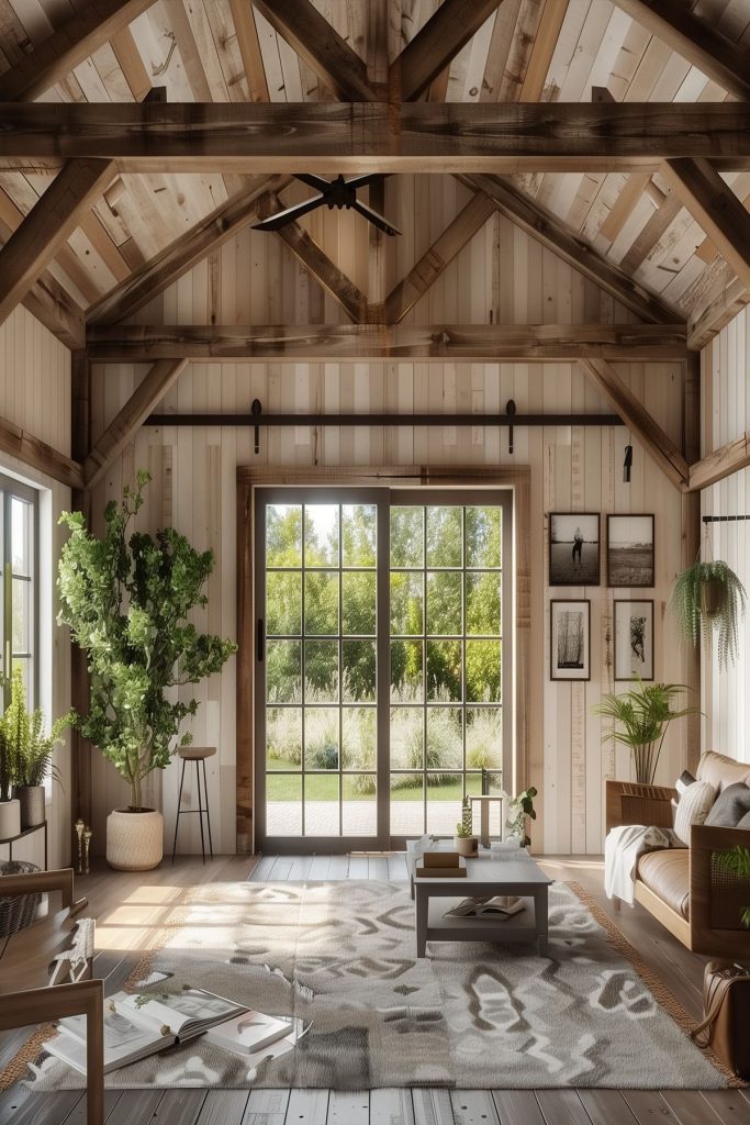These elevated sleeping quarters not only optimize vertical space but also infuse your living space with a rustic ambiance that perfectly complements the barn aesthetic.