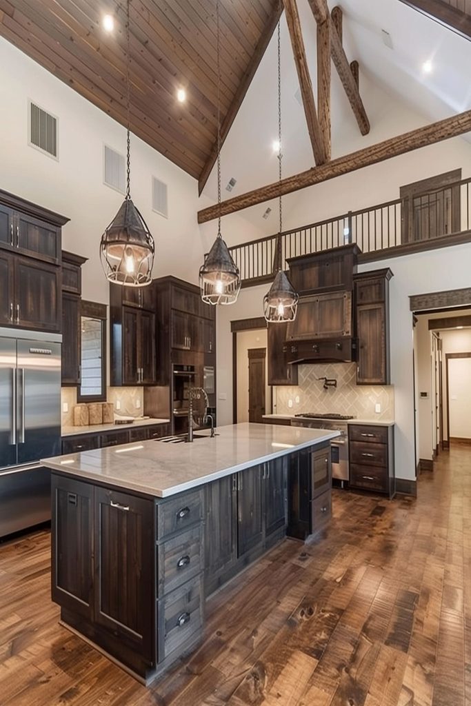 Infuse rustic charm into your barndominium with barn-style lighting fixtures, blending vintage aesthetics with modern functionality.