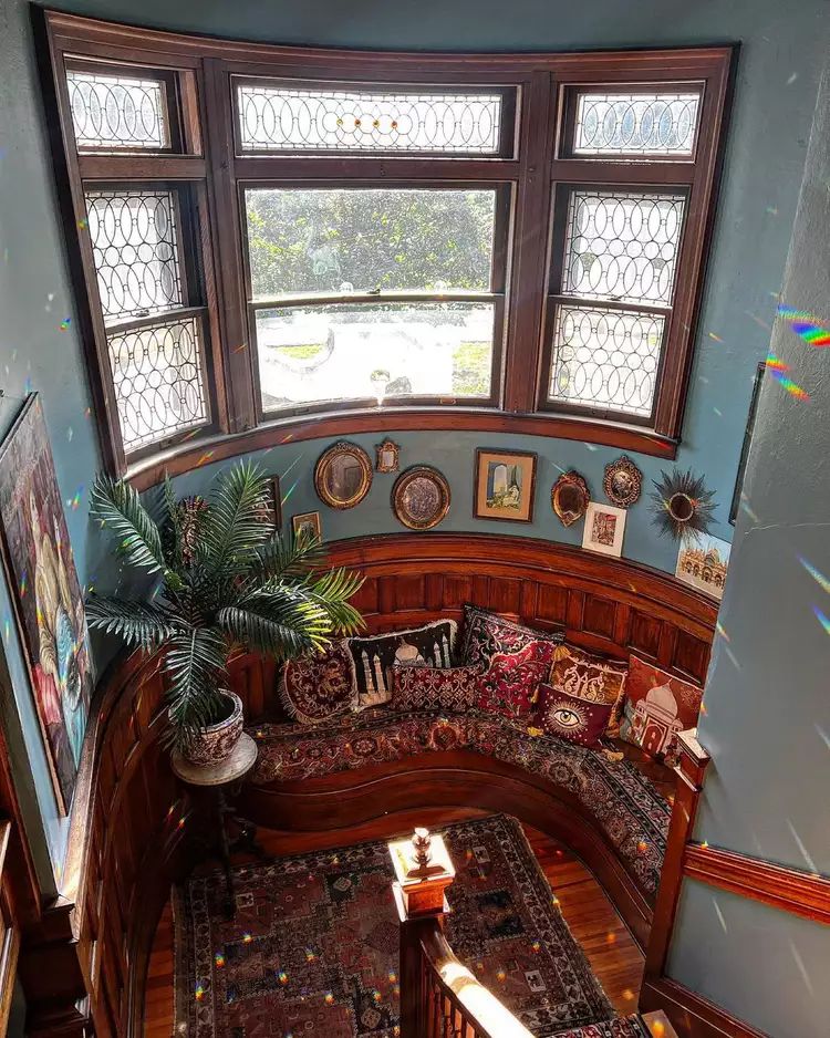 Transform your landing into a cozy retreat with oversized cushions or a stack of soft throw pillows. This simple setup creates a casual and inviting space to relax, lounge, or read, making even the smallest area feel comfortable and functional.