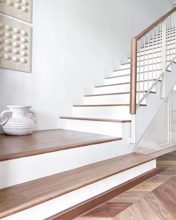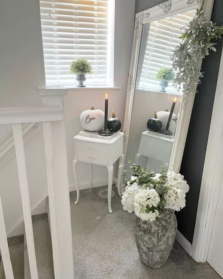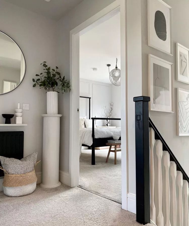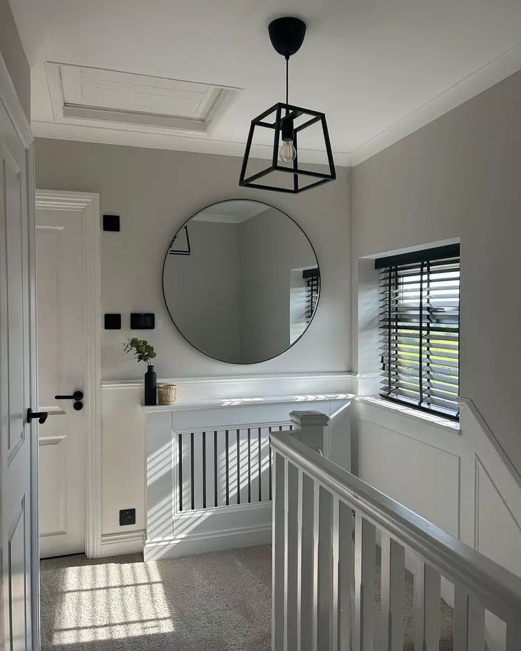 A full-length mirror on your landing not only provides a convenient space to check your outfit, but it also helps make the area feel more expansive and brighter. This practical addition serves both a functional and aesthetic purpose, giving your space a more open and airy feel while adding an extra touch of style.