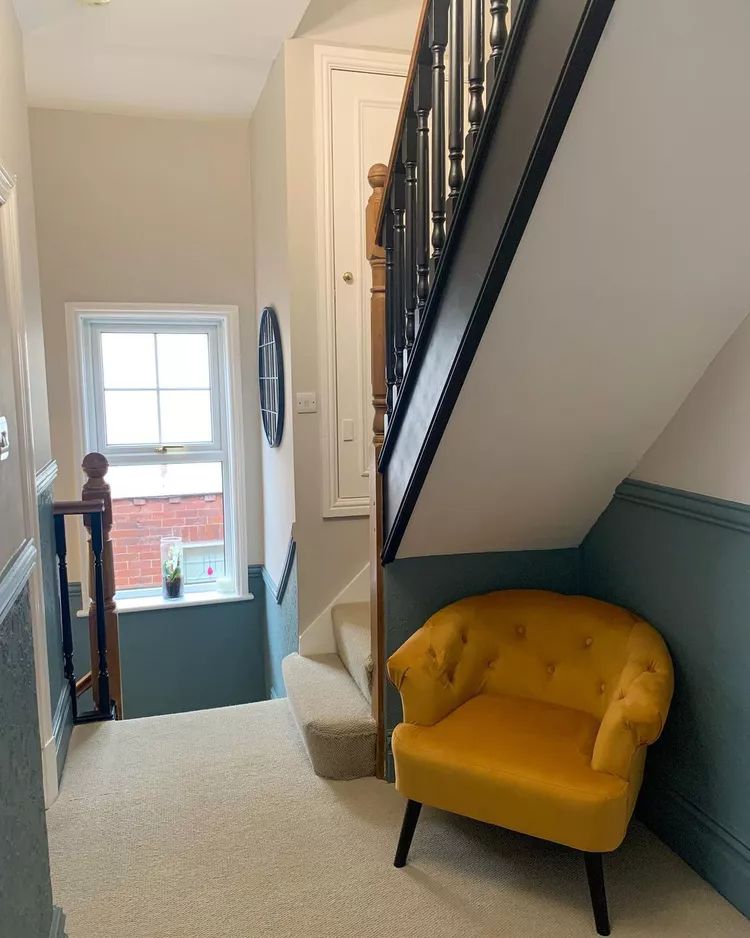 A soft white chair placed on the landing offers the perfect spot to unwind. Ideal for reading or taking a break, this chair can serve as an inviting nook away from the main living areas. It provides a peaceful retreat, allowing you to relax and enjoy a moment of solitude. If your landing is large enough, consider adding a comfy seat to turn it into a cozy haven.