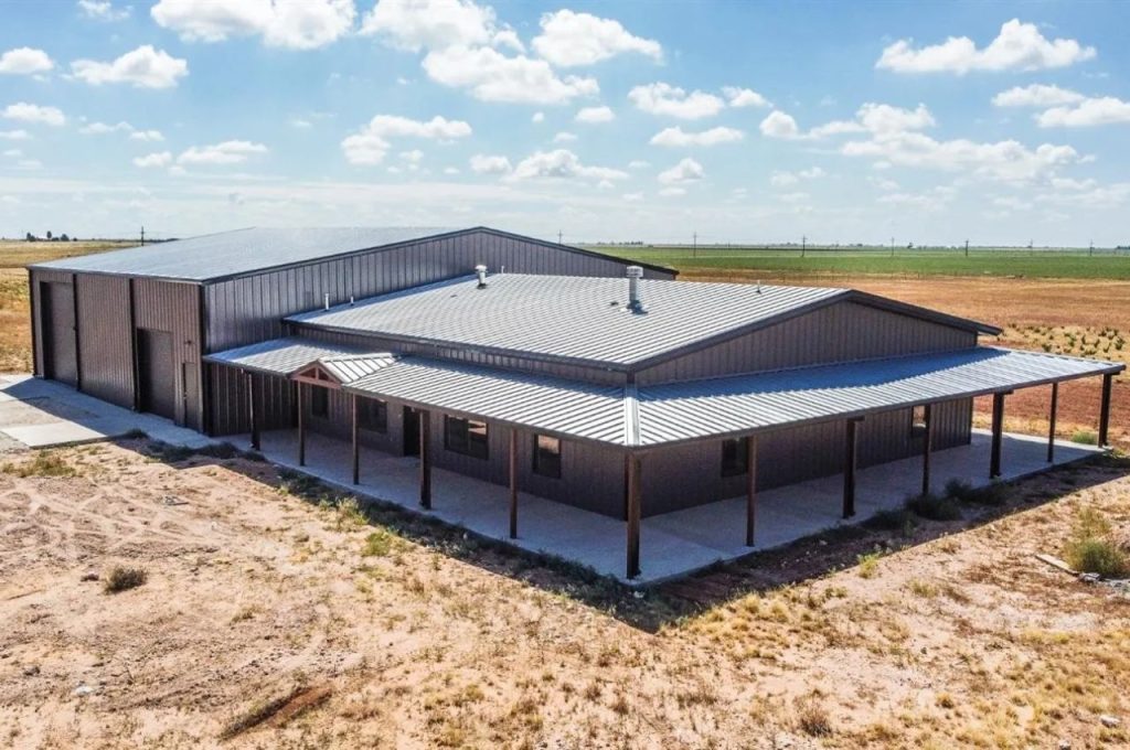 A stunning 4-bedroom, 2-bathroom Barndominium spanning an impressive 6,700 square feet, this 2023-built home sits on 20.02 acres of open Texas countryside in Idalou. Its sleek charcoal metal exterior and durable standing-seam roof offer both style and longevity. A spacious wraparound porch, supported by rustic wooden posts, provides a welcoming outdoor retreat. The attached shop adds incredible versatility, perfect for projects or business use. Priced at $650,000, this single-family home blends modern convenience with rural tranquility, making it an ideal space for those seeking both function and freedom.