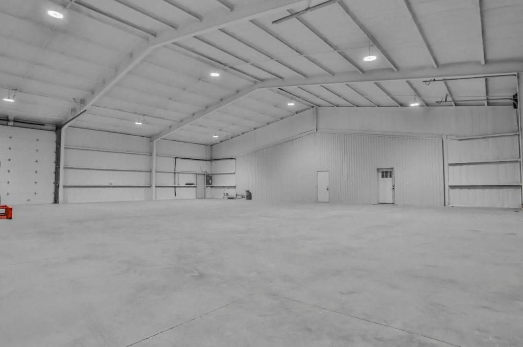 This impressive 4,200-square-foot attached shop is a versatile space designed for efficiency and functionality. With soaring 16-foot side walls and an expansive open floor plan, it offers endless possibilities for workshops, storage, or even a business operation. The high ceilings, exposed steel framing, and industrial lighting create a modern, well-lit environment, while durable concrete floors ensure longevity and easy maintenance. Multiple access points, including a large roll-up door and side entrances, enhance accessibility. Whether for work, or large-scale projects, this space seamlessly complements the Barndominium’s balance of practicality and comfort.