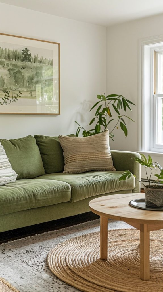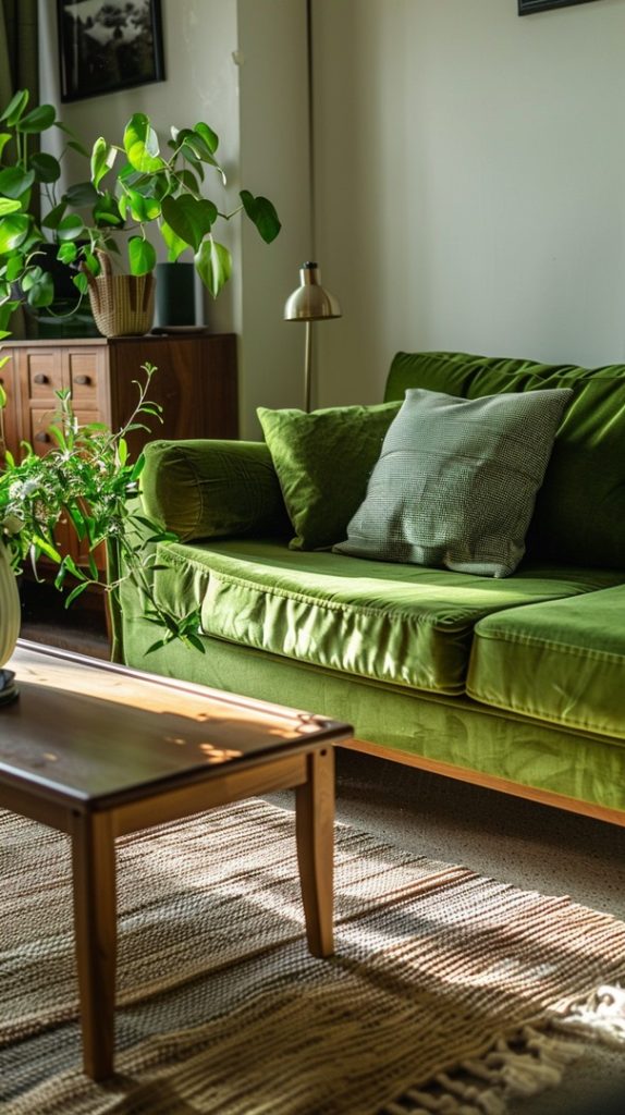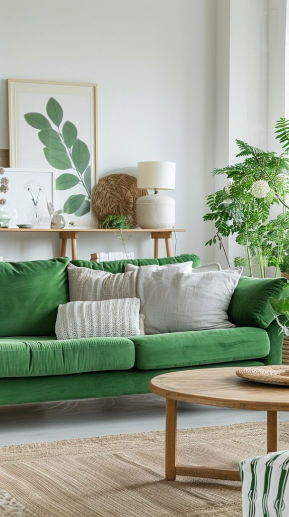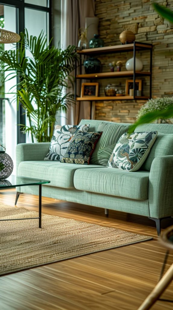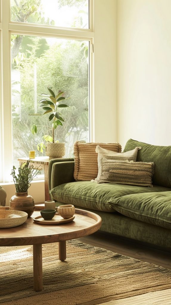 Achieve a serene and cohesive look with a monochromatic color scheme. Use various shades of green and natural materials to create a calming and eco-friendly living space.