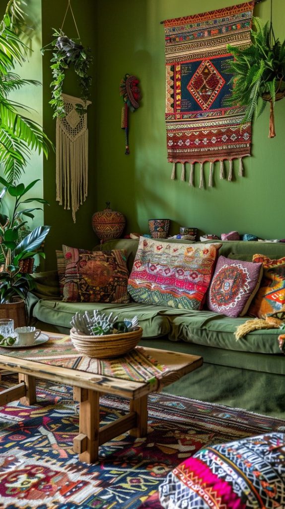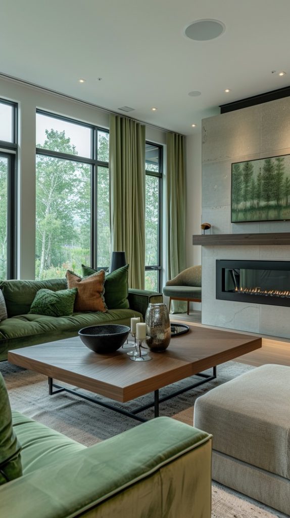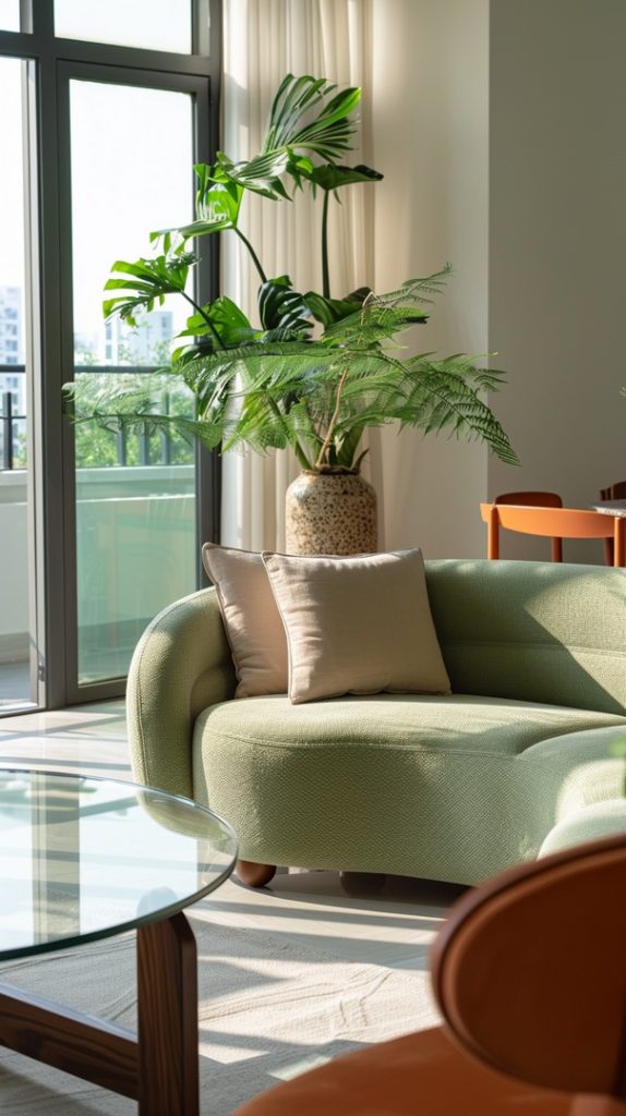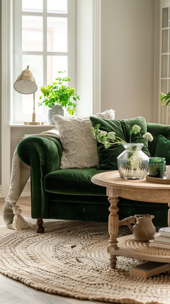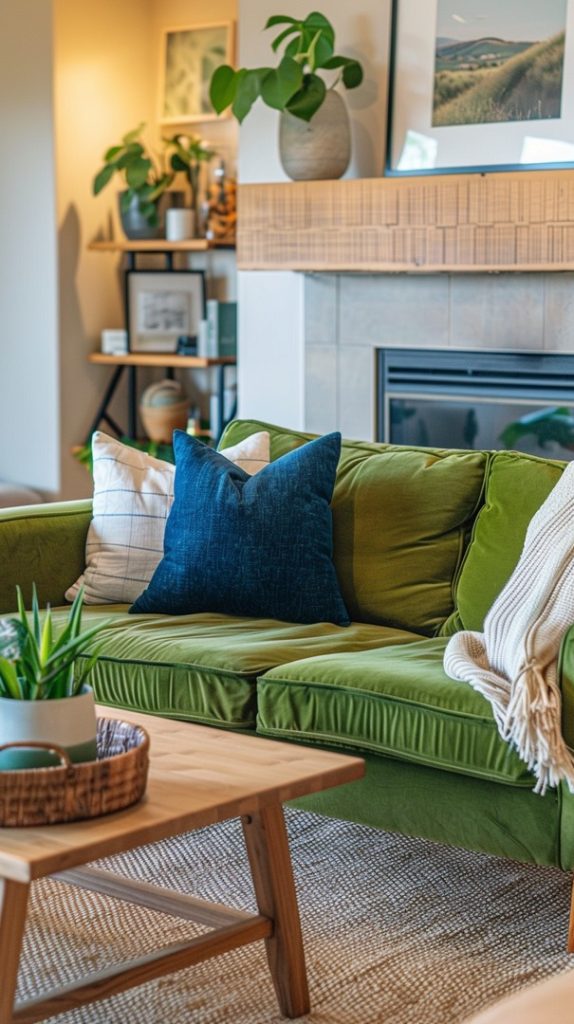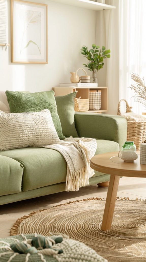 Achieve a serene and cohesive look with a monochromatic color scheme. Use various shades of green and natural materials to create a calming and eco-friendly living space.