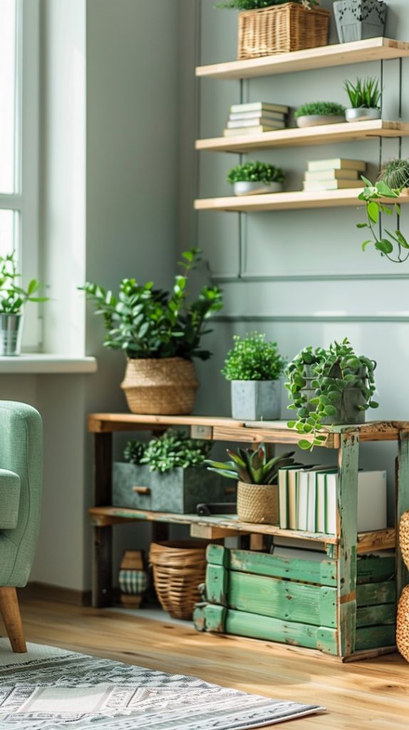 Craft a DIY shelf from reclaimed wood to add both storage and rustic charm to your living room. This project is a perfect example of sustainable living and creativity.