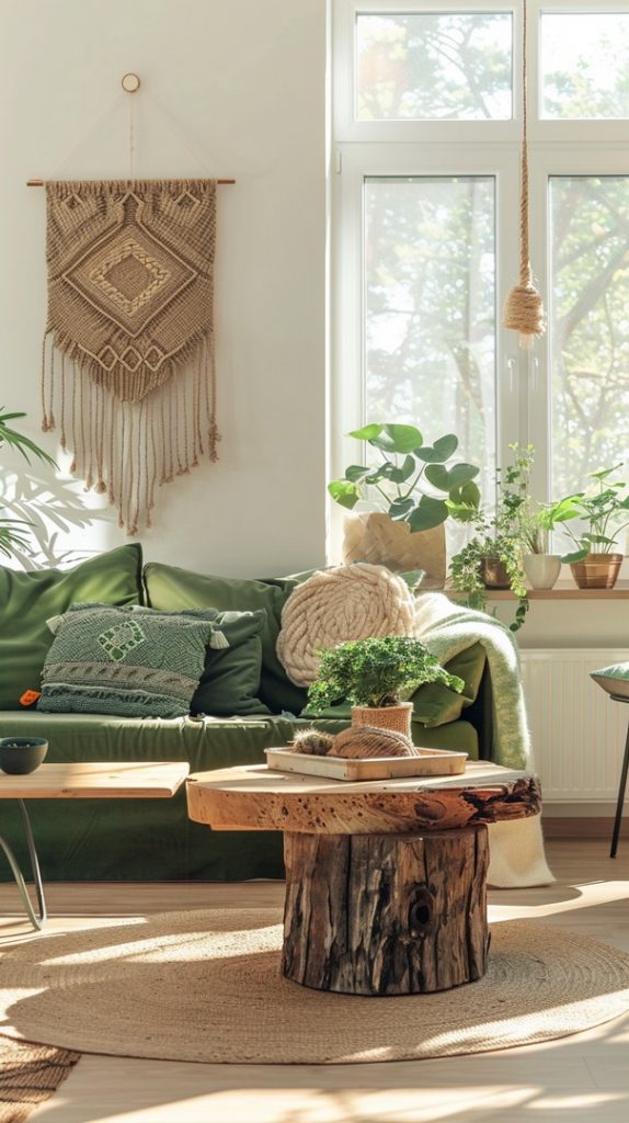 Adorn your walls with woven tapestries and other natural hangings. These pieces reflect a commitment to sustainability and add a cozy, handcrafted feel.