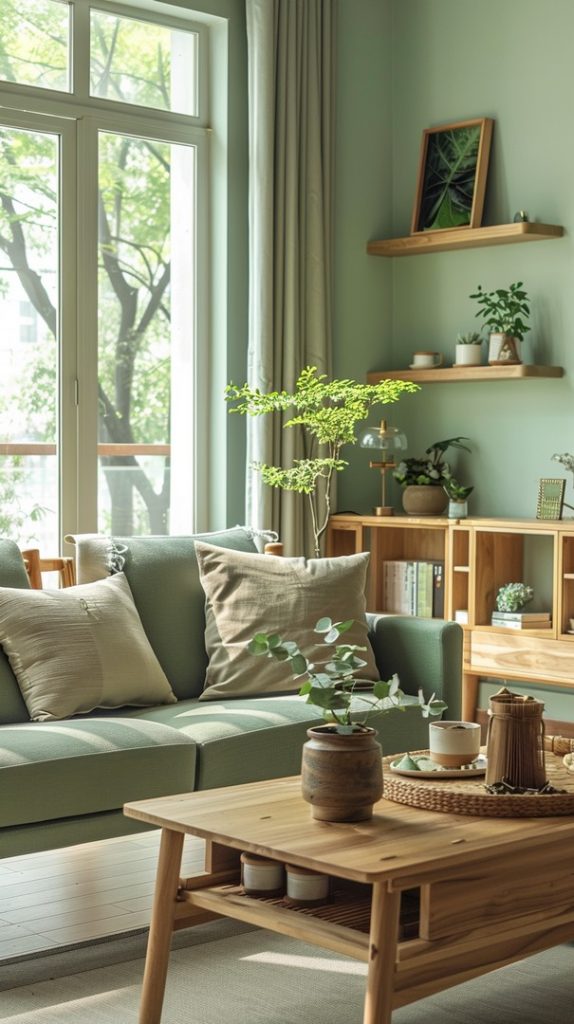 Paint your walls in muted green tones to create a calm and natural atmosphere. Use eco-friendly paint to ensure a healthy indoor environment.