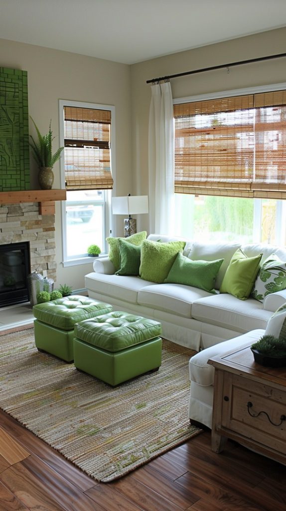 Choose ottomans that double as storage units to maximize space in an eco-friendly way. Look for those made with recycled or upcycled materials to keep your living room both tidy and green.