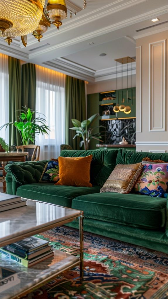 Blend opulence with sustainability by incorporating eclectic decor elements such as vintage pieces, fair trade products, and recycled materials. This living room showcases how luxury can be eco-conscious.