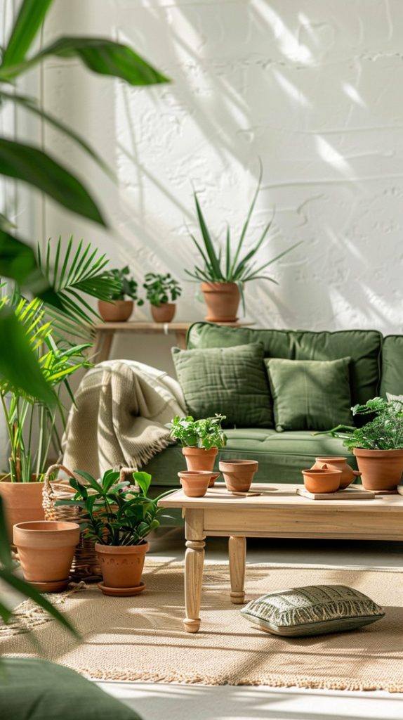 Incorporate terracotta decor items to add a rustic charm to your living room. Terracotta is a sustainable material that provides a warm and earthy aesthetic.