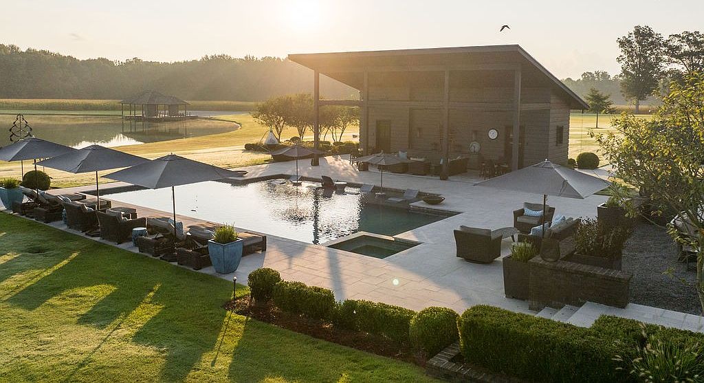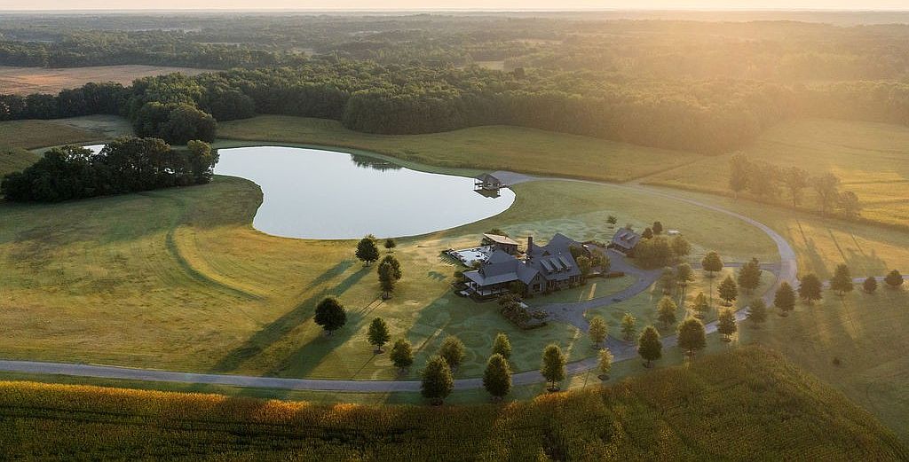 Pitchfork Farm, established in 2009 and located in Stanton, TN, stands as a landmark of refined country living on nearly 2,500 acres, embodying both historical significance and modern luxury. This custom 10,036 sq ft residence, listed at $35,000,000, was expertly designed for grand family life, with expansive open living spaces, a chef’s kitchen, and multiple cozy outdoor porches offering sweeping views of the 6-acre lake. Its timeless architectural style blends classic elegance with state-of-the-art amenities, featuring a basement built for family entertainment, private sleeping pods, a wine cellar, and luxurious finishes throughout. With substantial farm operations, onsite staff, and a full suite of turn-key amenities, this estate is perfect for seamless family living and large gatherings alike.