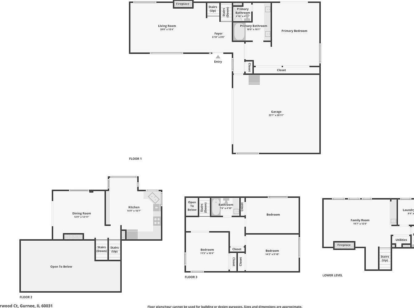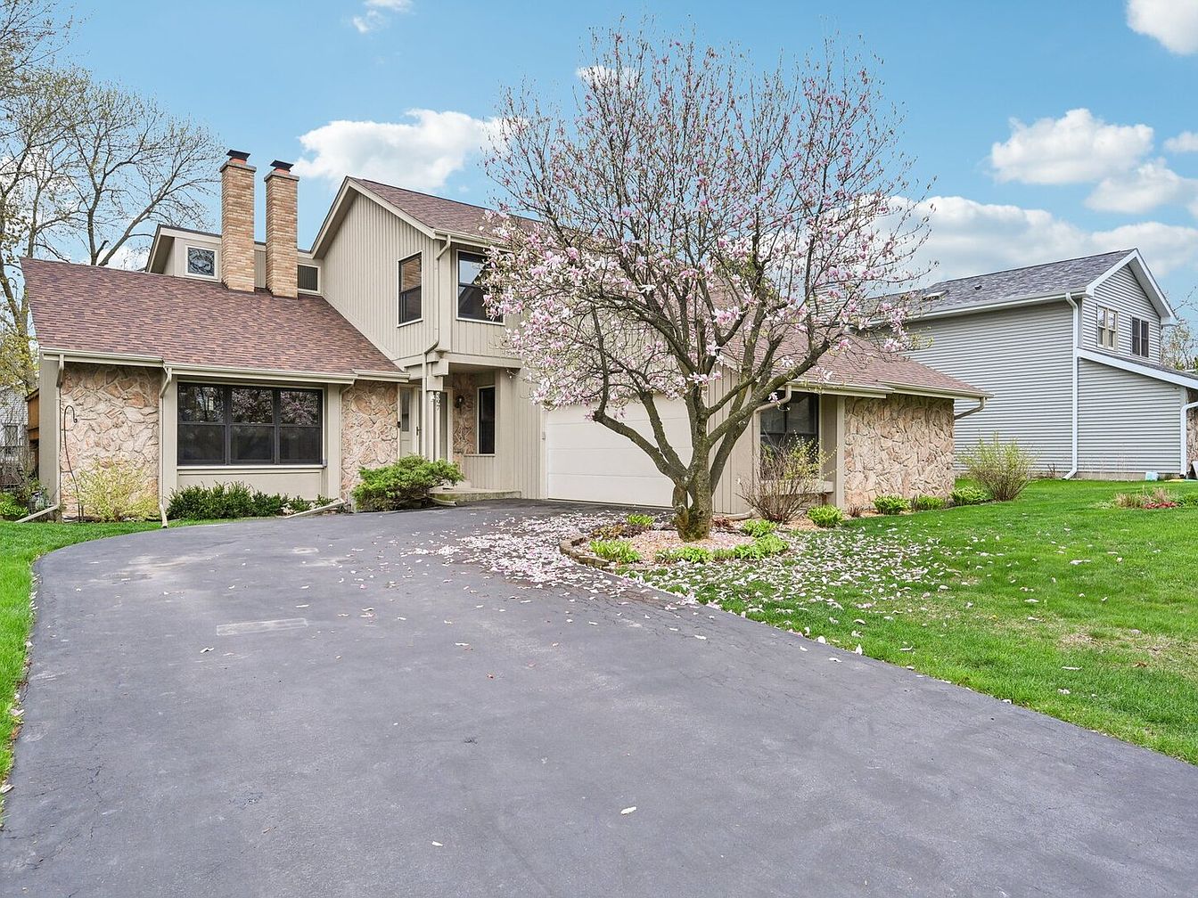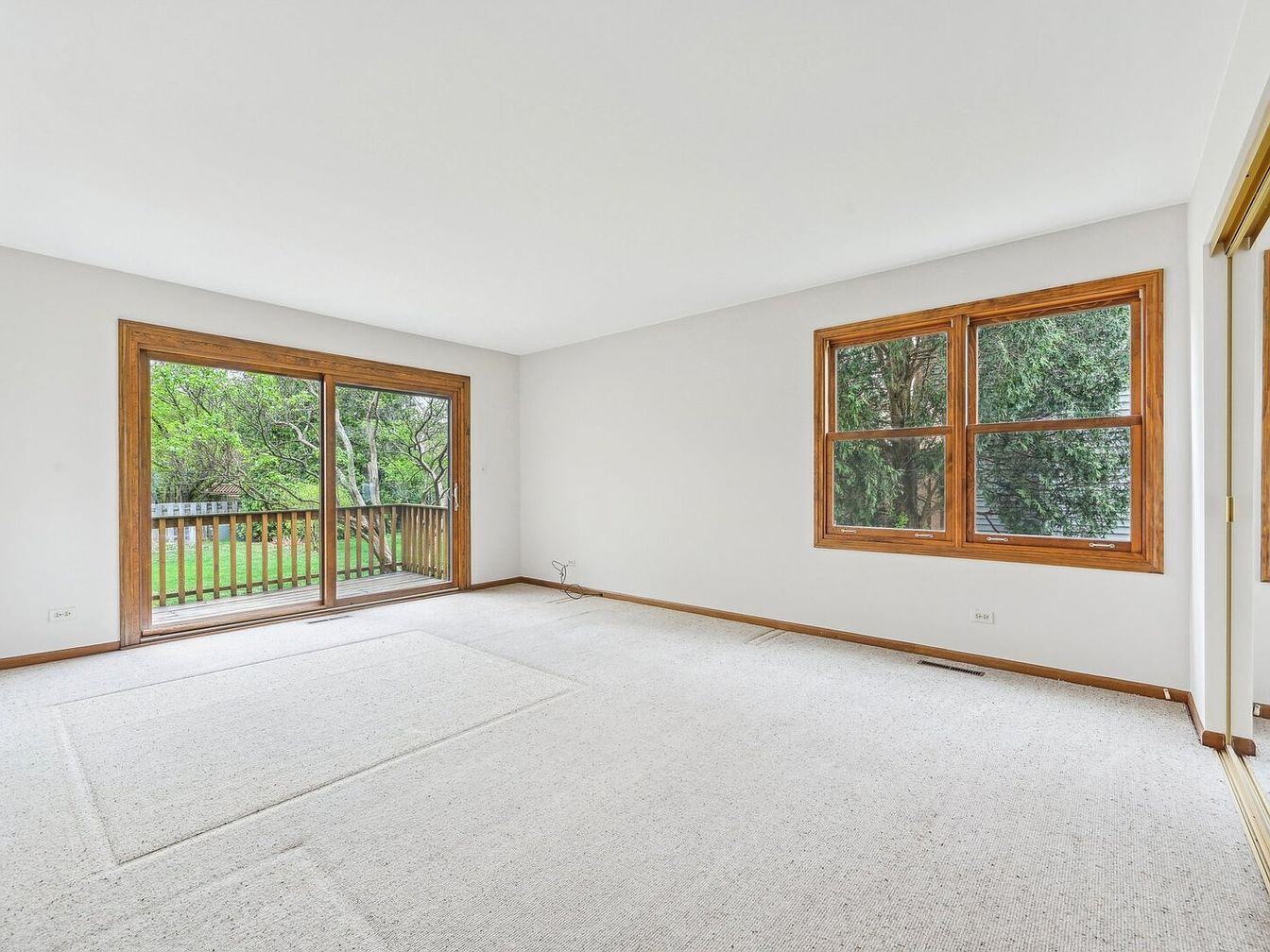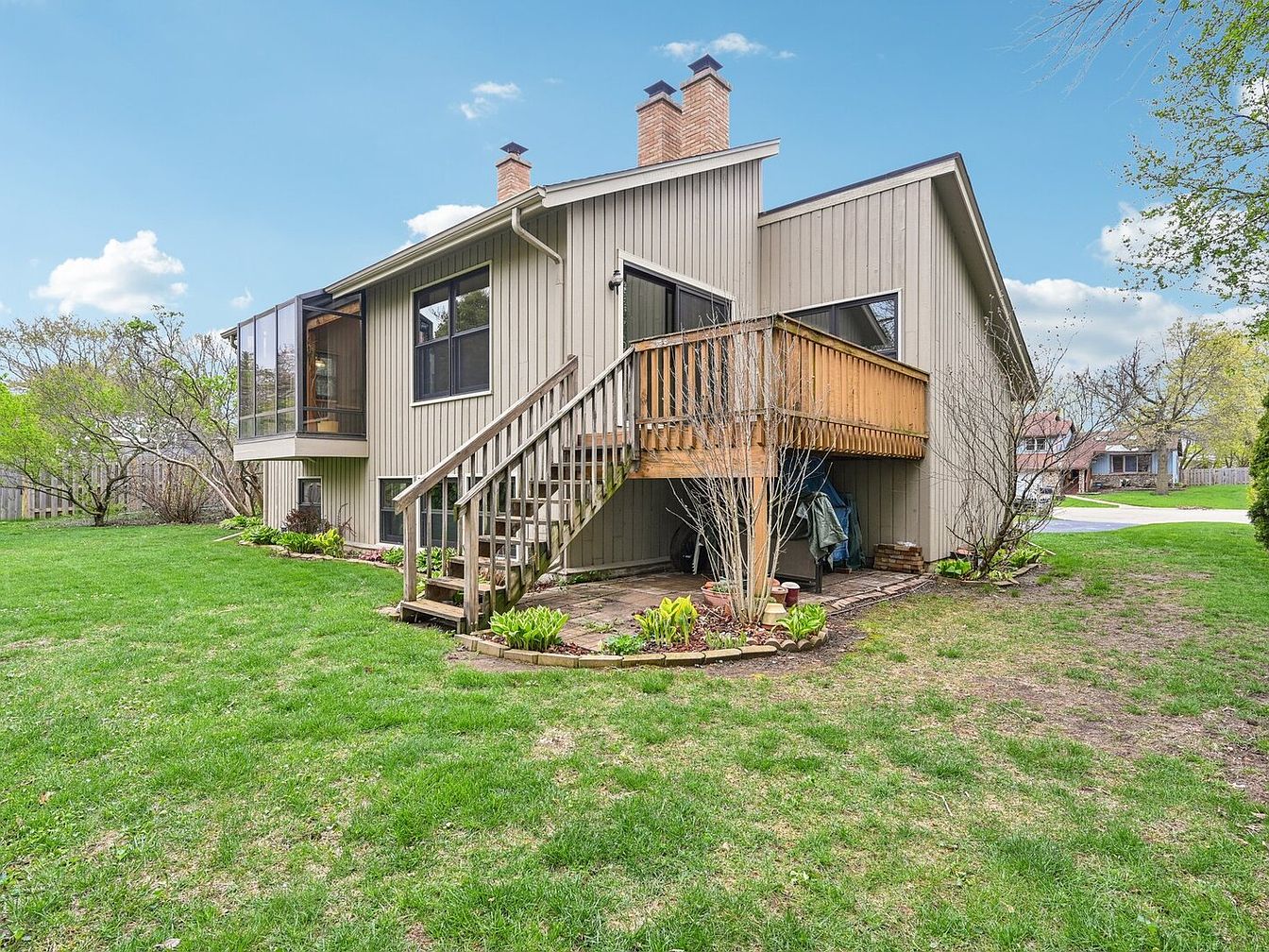 This unique split-level home is nestled on a quiet cul-de-sac in the desirable Country Trials neighborhood, right in the heart of vibrant Gurnee, Illinois. Built with character and charm, the home features a blend of natural stone and light siding exterior complemented by a steeply pitched roofline and two prominent brick chimneys, reflecting a distinctive architectural style that melds traditional and contemporary elements. The interior boasts vaulted ceilings with a striking floor-to-ceiling fireplace and a custom oversized solarium in the kitchen, flooding the space with natural light. The separate dining area opens via an oversized sliding glass door to a deck perfect for outdoor entertaining. The spacious main level primary suite includes an oversized soaking tub and a private patio for relaxation. Upstairs, there are three additional bedrooms and a full bathroom, providing ample space for family or guests. Recent renovations add significant value and peace of mind, including a new roof installed in 2021, furnace and water heater replacements in 2022, a double-poured asphalt driveway upgraded in 2019 to accommodate heavy-duty vehicles, and fresh interior painting completed in 2025. Located adjacent to the scenic O’Plaine Park with basketball courts, walking trails, baseball fields, and playgrounds, this home offers both tranquility and convenience with easy access to I-94 and Rt 41 for commuters. Listed at $400,000, this well-maintained property presents a fantastic opportunity to enjoy a comfortable lifestyle on a spacious lot in a prime Gurnee location.