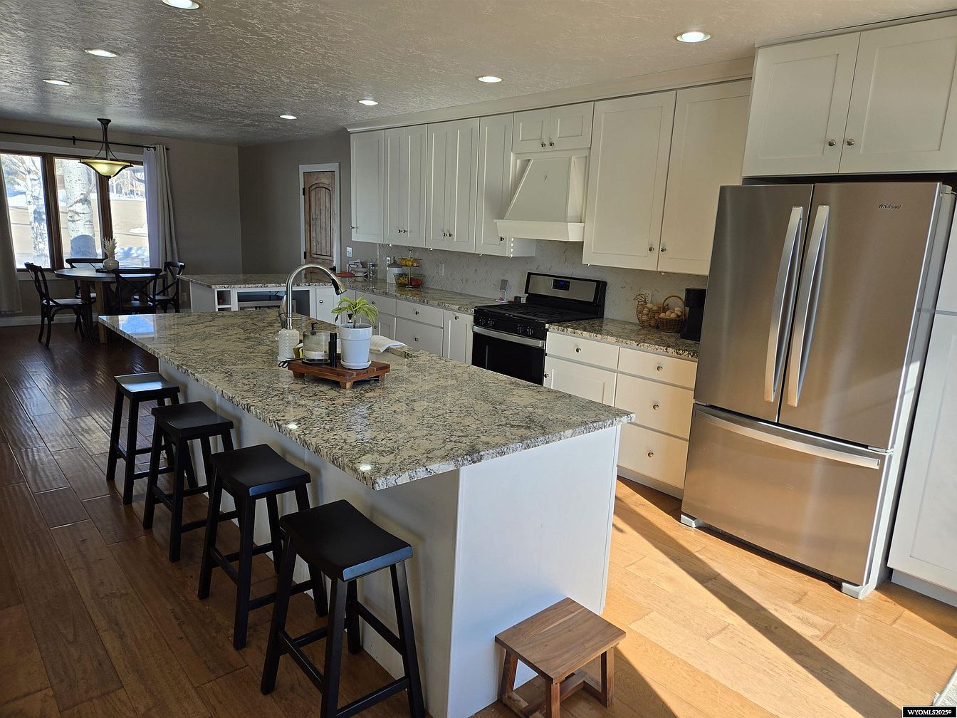 This beautifully updated home, built in 1989, features a charming architectural style that blends traditional and contemporary elements, perfectly suited for the serene cul-de-sac location in Evanston, Wyoming. Spanning 3,544 sq. ft., this 5-bedroom, 3-bathroom residence offers expansive living areas designed for comfort and modern convenience. The house boasts a walk-out basement that connects seamlessly to a spacious backyard, ideal for outdoor activities and future expansions. The basement includes a fantastic entertainer’s movie/game room complete with a wet bar, making it perfect for family gatherings or hosting guests. Listed at $589,900, this move-in ready home combines thoughtful design, comfort, and breathtaking views of the Uinta Mountains, offering an incredible opportunity for homeowners seeking a tranquil yet stylish living environment.