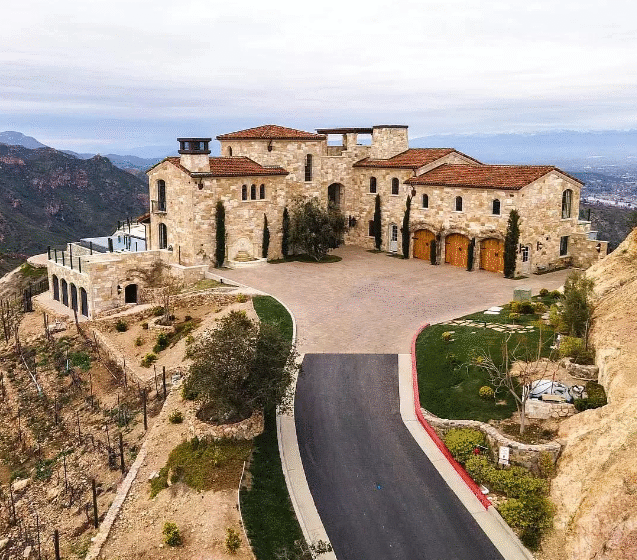 This celebrated residence is not just a luxurious retreat but a piece of cinematic history, nestled within 37 acres of private vineyards and breathtaking 360-degree mountain, valley, and partial ocean views.
