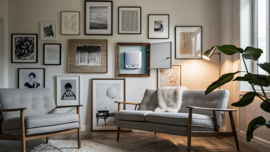 A wall thermostat can interrupt the flow of your décor. Designers often hide it behind a piece of framed art or a hinged canvas that swings open for easy access. This solution blends utility with creativity, allowing the thermostat to disappear into a curated gallery wall or decorative arrangement—keeping your space visually clean without sacrificing function.