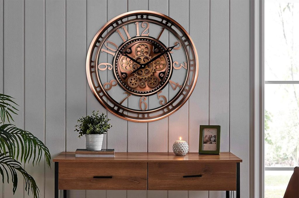 2. Industrial Chic: The CLXEAST Moving Gear Wall Clock