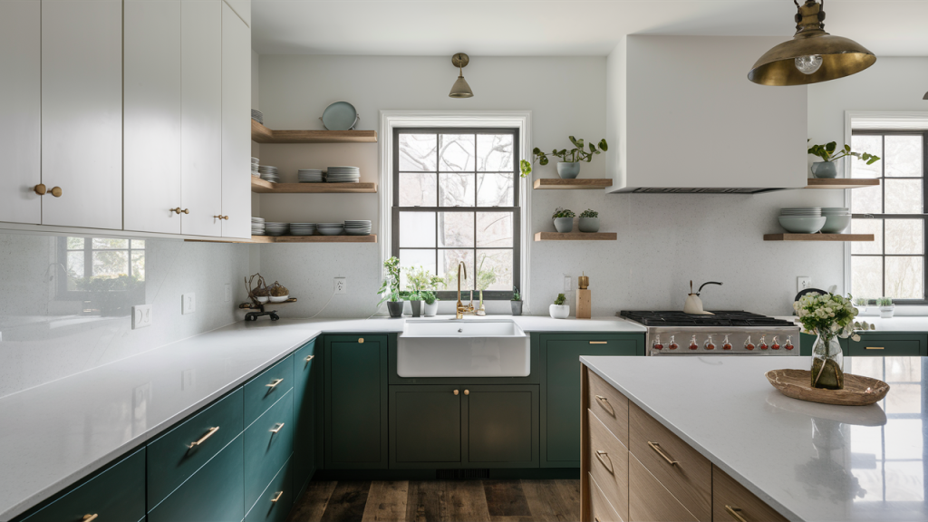 For a bold yet sophisticated upgrade, introduce color through your kitchen or bathroom cabinets. A deep navy, sage green, or rich terracotta can add character while maintaining a refined look. Pair colorful cabinets with neutral countertops and backsplashes to prevent visual clutter. Soft brass or matte black hardware enhances the contrast, creating a stylish, modern aesthetic. This approach adds vibrancy without making the space feel overwhelming.