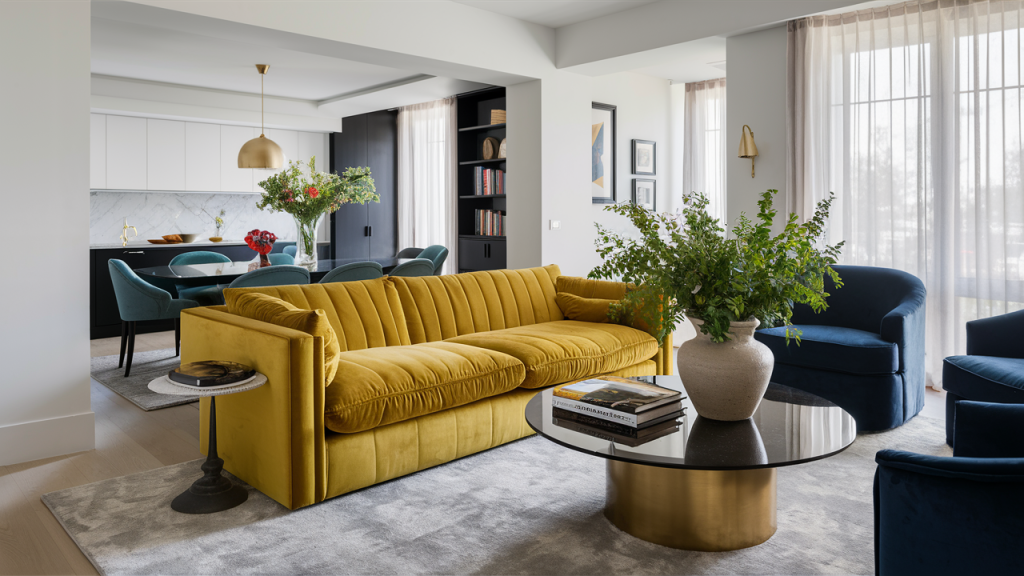 If you’re hesitant to commit to painted walls, opt for colorful furniture instead. A bold sofa in mustard yellow, a deep teal armchair, or a bright red dining table can instantly transform the mood of a space. These statement pieces add personality and energy without requiring a full room makeover. Pair them with neutral walls and complementary accessories to keep the look stylish and intentional rather than overwhelming.