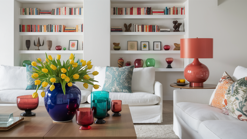 If you’re hesitant about bold colors, start with small decor accessories. Think vibrant vases, colorful candle holders, or eye-catching sculptures placed strategically on shelves or coffee tables. A bright lamp or a striking ceramic bowl can instantly liven up a neutral space without overwhelming it. These accents are easy to swap out, making them a flexible way to experiment with color while maintaining balance in your design.