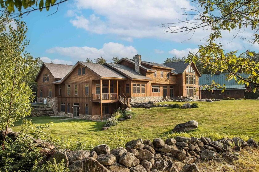 Moosewalk Lane in Andover, VT is a stunning custom-built luxury estate set on 384 acres in the picturesque Green Mountains, offering unparalleled privacy and scenic beauty. This modern post and beam timber frame home features 10,062 sq ft with an expansive open concept design, highlighted by a magnificent two-story great room, a stone fireplace, chef’s kitchen with double appliances, and a wood-fired pizza oven. Ideal for family living, it boasts a main-level 2-bed, 2-bath primary suite, five additional bedrooms, multiple living spaces, a gym, media room, and miles of private trails. Built recently with timeless craftsmanship and fully renovated, this estate, listed for $6,950,000, is perfect for year-round family retreats or corporate gatherings close to Okemo and Stratton Mountain ski resorts.