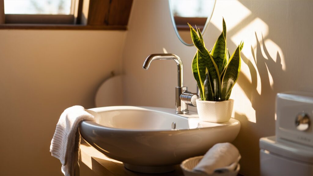 Enhance the spa-like ambiance of your bathroom by incorporating moisture-loving plants like ferns and spider plants. Hanging macrame planters from the ceiling or wall-mounted hooks saves counter space while bringing fresh energy to the room. A small potted aloe vera plant on the sink or open shelving adds functionality, as its soothing gel can be used for skincare. For a more modern touch, opt for glass terrariums with small succulents placed on window ledges or shower niches.