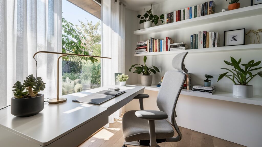 A well-placed plant in a home office can boost productivity and reduce stress. A small jade plant or a low-maintenance ZZ plant on your desk brings life to the workspace without requiring constant care. Pairing the plant with a stylish ceramic pot and minimal decor keeps the area looking neat and organized. For additional greenery, place a medium-sized plant like a peace lily in the corner, adding a refreshing element without crowding the room.