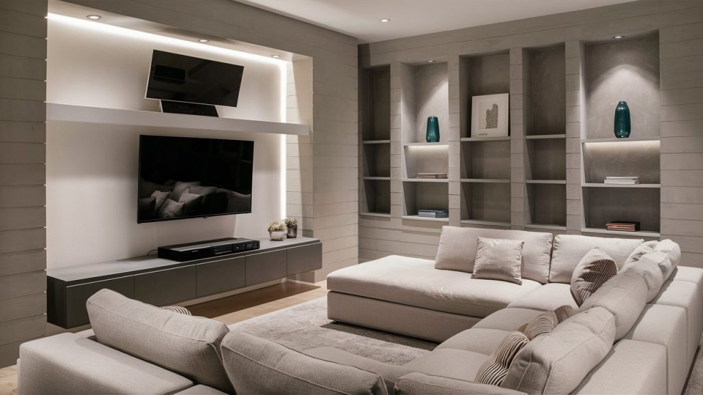 Exposed cables and wires can ruin the clean and organized look of a TV wall. They can make the space feel disheveled and distract from the room’s overall design. To solve this, consider cable management solutions like wall-mounted cable organizers, raceways, or hidden storage compartments within media consoles. These options keep your setup tidy and streamlined, ensuring the TV wall looks neat and cohesive without any unsightly cables in sight.