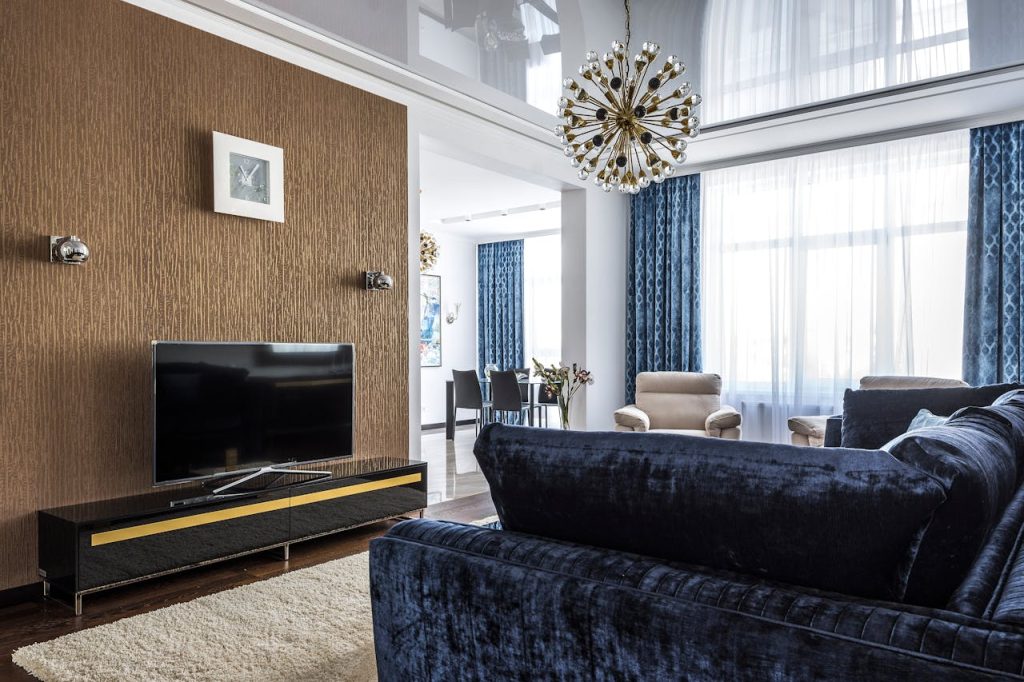 The color and texture of the wall behind your TV can make a huge difference in how it’s perceived. A stark white or overly busy wall might make the TV feel out of place. To create a more cohesive and appealing look, choose a wall color or texture that complements both the TV and the room’s design. Soft neutral tones or even a textured accent wall can create the perfect backdrop for your TV. A feature wall with paint or wallpaper can elevate the space, making it feel intentional and sophisticated.