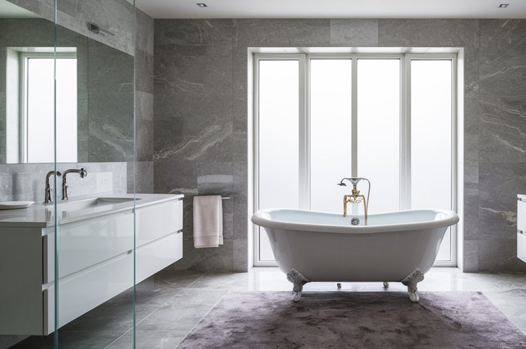 Lighting has a huge impact on how modern or dated a bathroom feels. Swap out old sconces or basic overheads for a sculptural pendant or sleek chandelier. Go for something that makes a statement—whether it’s a globe-style light or a brass fixture with sharp, contemporary lines. The right lighting draws attention upward, frames the tub beautifully, and creates an atmosphere that feels updated, inviting, and chic.